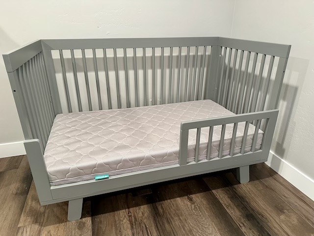 大切なベビーの健康のためのGREENGUARD GOLD CERTIFIEDのモダンでシンプルなクリブです。写真の用にスタンダードのクリブ(マットレスの高さ調整できます)から、落下防止のガード付きの幼児用のお昼寝ベットや、Daybedなど、かなり長く使っていただけます。