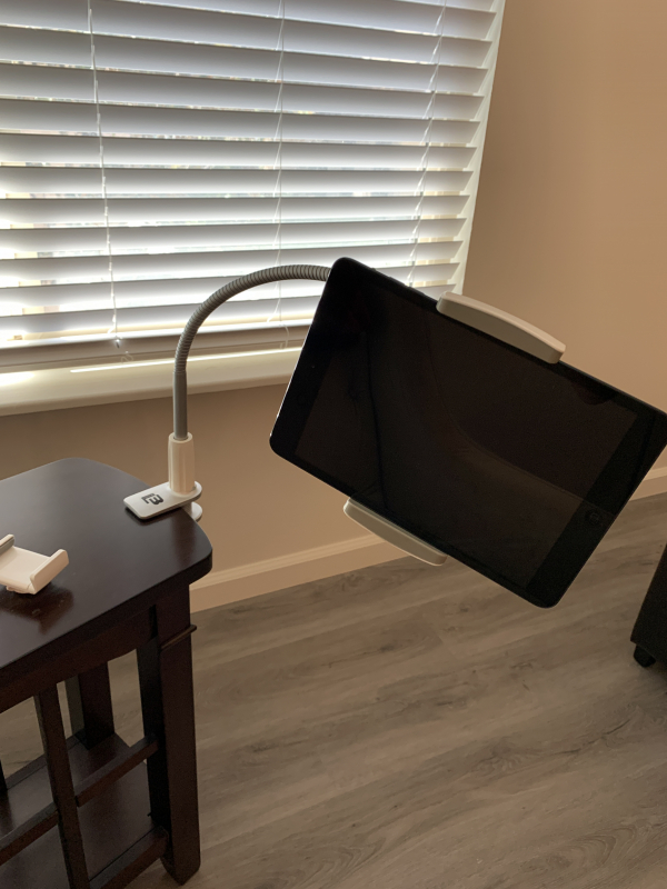 iPadminiやスマホを固定して、ベッドやソファで動画やビデオ通話を楽しめます。フレキシブルなアームで、手が開放されます。残念ながら、フルサイズのiPadは大きすぎて固定できません。