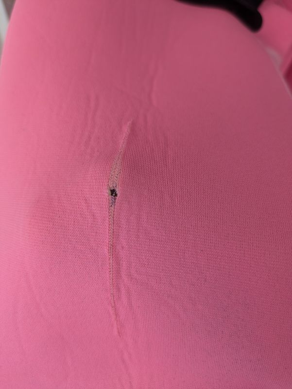 右膝に小さな穴があります。